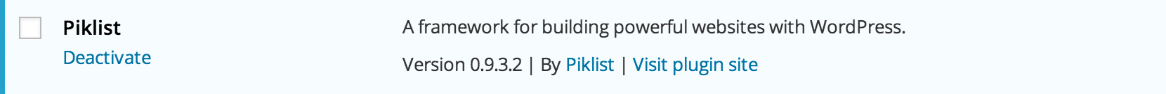 Piklist version 0.9.3.2 is now available at WordPress.org, and addresses a few issues. When installed with BuddyPress, Piklist would sometimes stop user registration emails from going out, which of course is a pretty big issue for your users. The Piklist update feature did not support running updates for brand new plugins. We plan on releasing a plugin in the next few weeks which will require this feature so we wanted to get this fix out as soon as possible. Version 0.9.3.2 also fixed an annoying notice that popped up when clicking on a quick link in a list table.