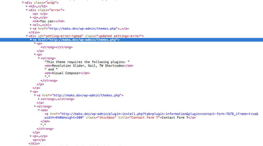 ewaffordMemberWhen attempting to use both the piklist checker (v0.6.0) and current version of TGMPA (https://github.com/thomasgriffin/TGM-Plugin-Activation/) One or the other seems to be injecting extra tags into the warnings.